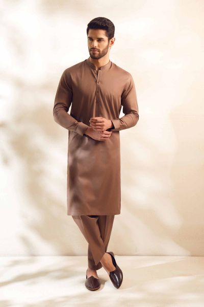 Immerse yourself in a new style with this two piece suit from the latest men's unstitched summer collection.