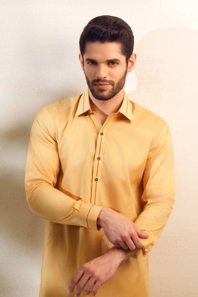 Immerse yourself in a new style with this two piece suit from the latest men's unstitched summer collection.