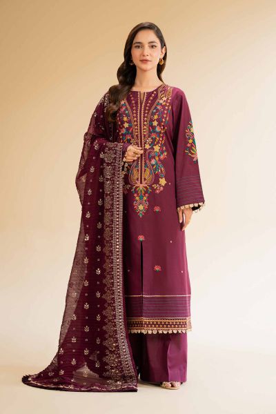 Reveal your bold side with this embellished three-piece from the latest unstitched summer collection.