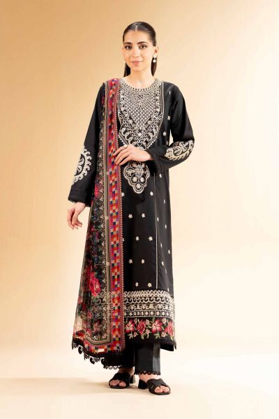 Perfect your look with this beautifully crafted embroidered three-piece from the latest unstitched summer collection.