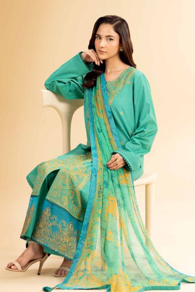 Perfect your look with this beautifully crafted embroidered three-piece from the latest unstitched summer collection.