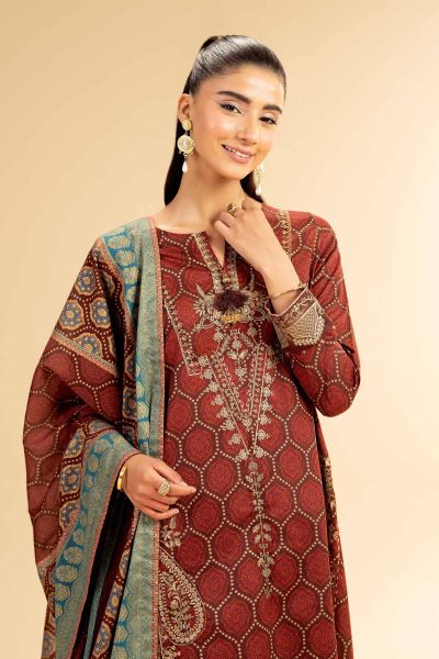 Unleash your creativity with gold printed embroidered three-piece from the latest unstitched summer collection.