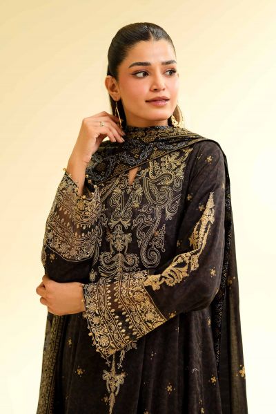 Awaken your style potential with gold printed embroidered three-piece from the latest unstitched summer collection.