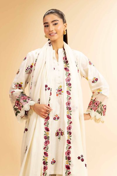 Make a bold statement with this trend-setting design printed embroidered three-piece from the latest unstitched summer collection.