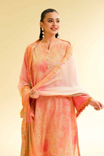 Unleash your inner style icon with this stunning creation of printed three-piece from the latest unstitched summer collection.
