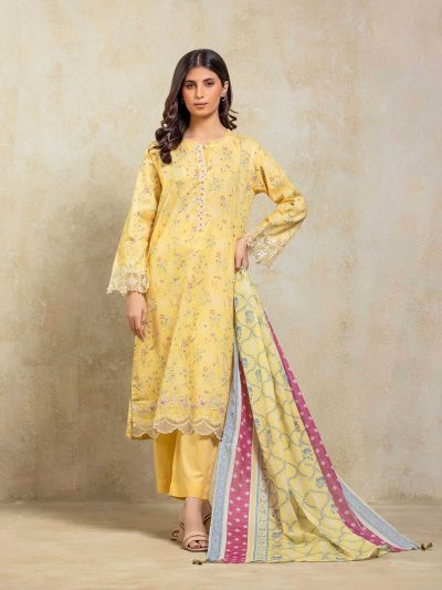 - Style: Floral Printed Shirt with Embroidered Placket, Organza Embroidery on Sleeves, and Embroidery with Lace on Daman
